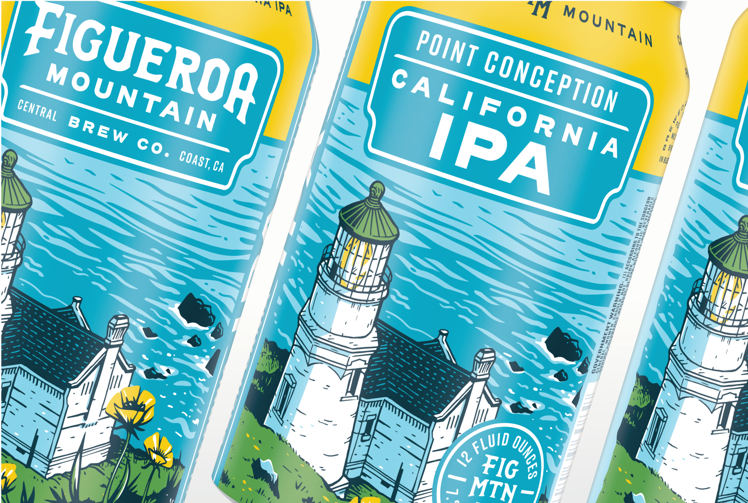 Updated illustrations for Figueroa Mountains classic IPA core cans.